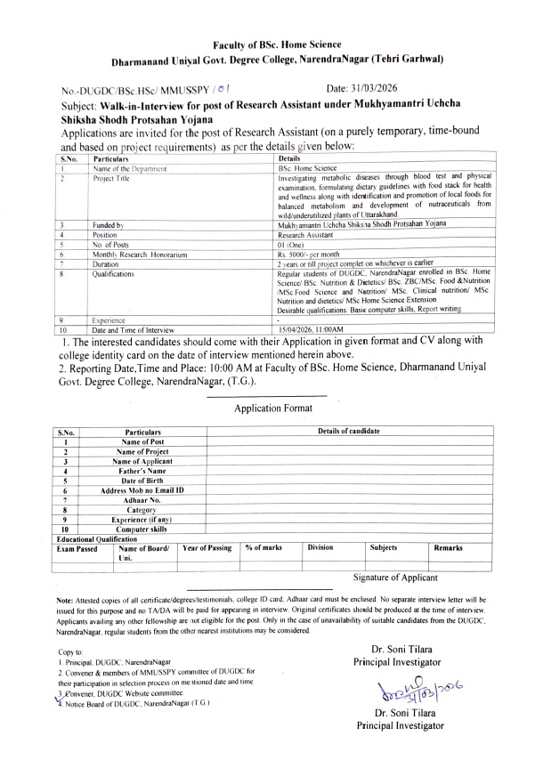 +91 9897108297‘Success is not all about greatness, it’s about Consistency. Consistent hard work leads to success and greatness will follow.’ I feel immensely honored to welcome you all to the online portal of Dharmanand Uniyal Government Degree College, Narendranagar, Tehri-Garhwal. Since its inception in 2006, the College has always strived to work towards achieving academic excellence along with holistic development of the students. Over the years, college has progressed by adapting to the need of the hour. The Covid Pandemic that shook the entire world adversely affected the education sector and teaching fraternity all over the globe had to adapt unconventional methods of teaching........... Read More