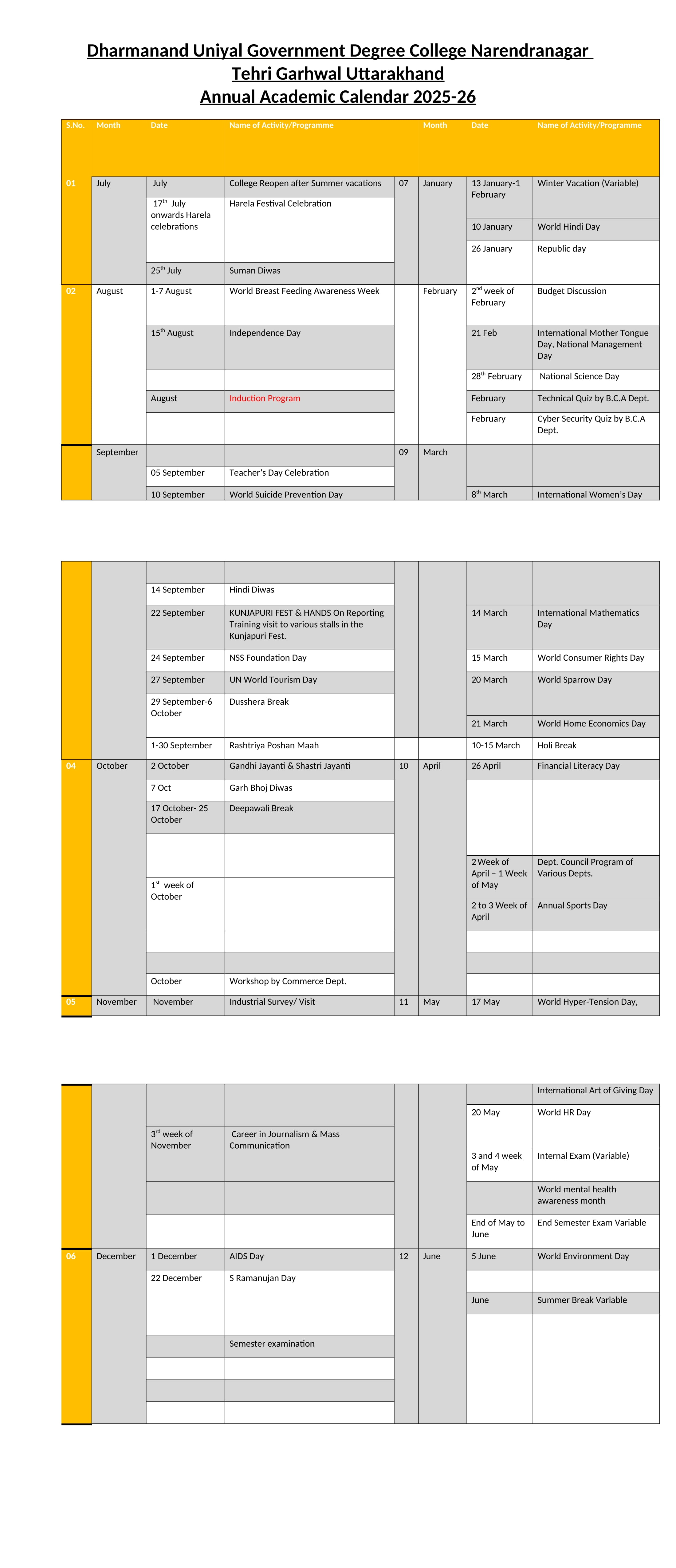 Departmental Council Programme of Different Departments |
