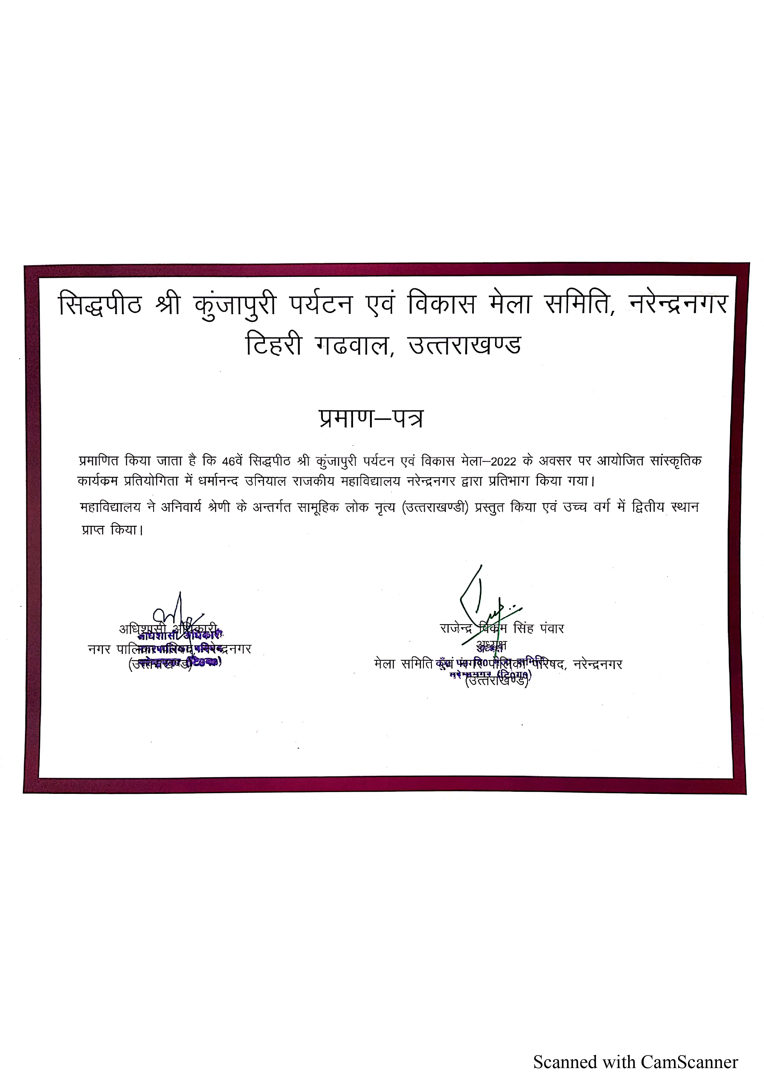 | 1. | 2022 | First Prize for presenting "Jhanki" on the theme SAVE HIMALAYAS, SAVE LIFE.हिमलय बचाओ,जीवन बचाओ । in Kunjapuri Fair |