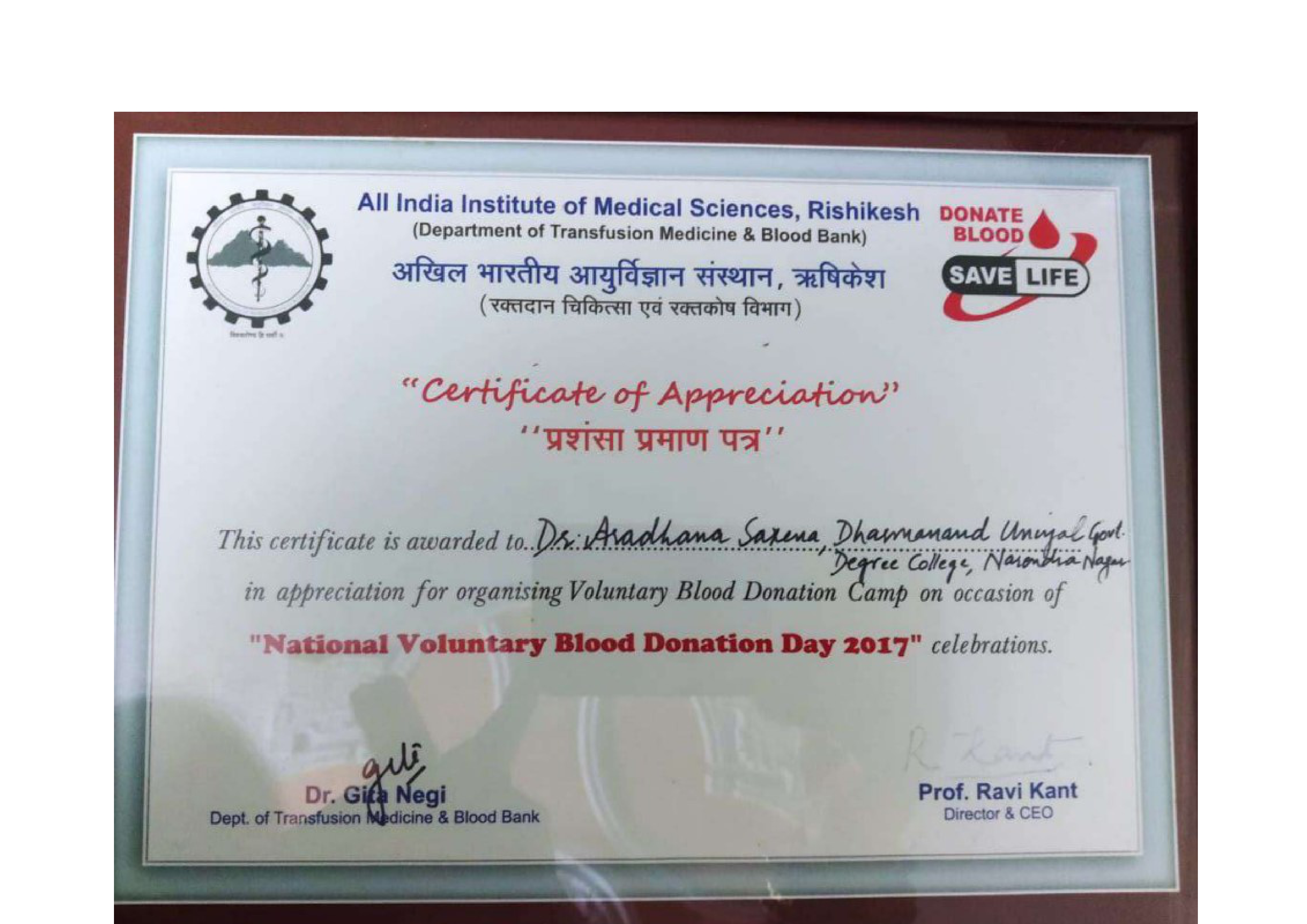 | 7. | 2020 | Appreciation Letter by "All India Institute of Medical Sciences, Rishikesh" to Dr. Aradhna saxena, Asst. Professor (Commerce) |